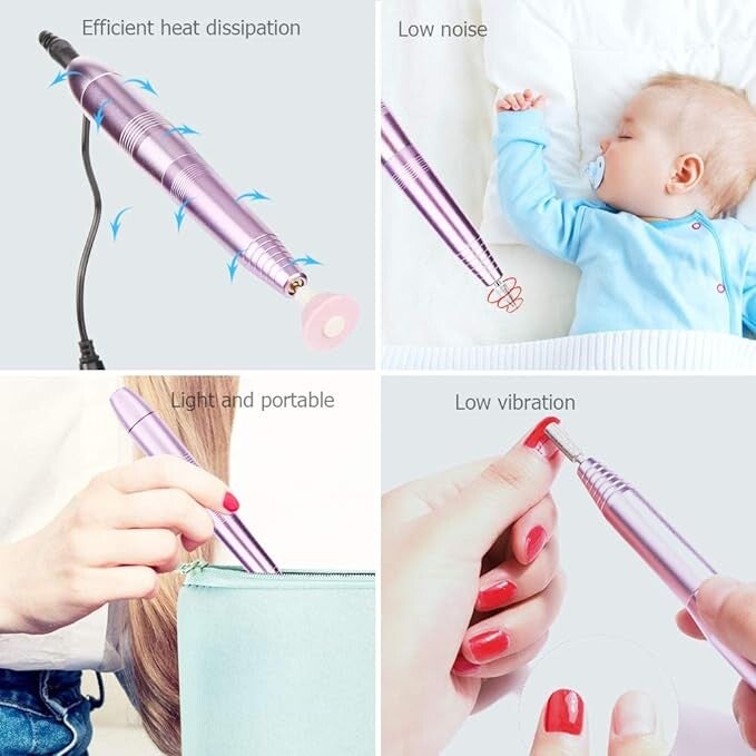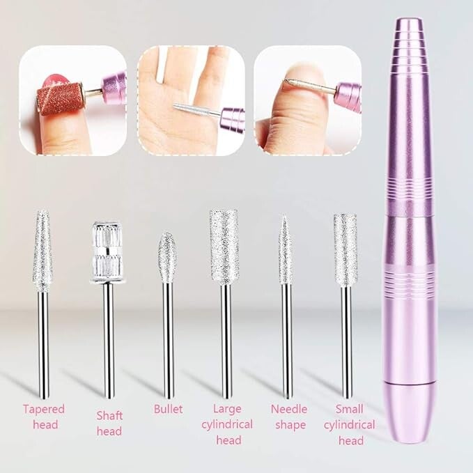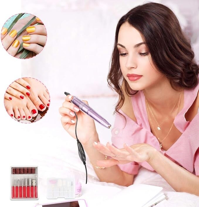 Lima de Uñas Eléctrica, Set Manicura y Pedicura Electrico Profesional con USB Portátil Velocidad Ajustable 0-20000RPM con 11 Tipos de Brocas de Pulido y 1 Cepillo