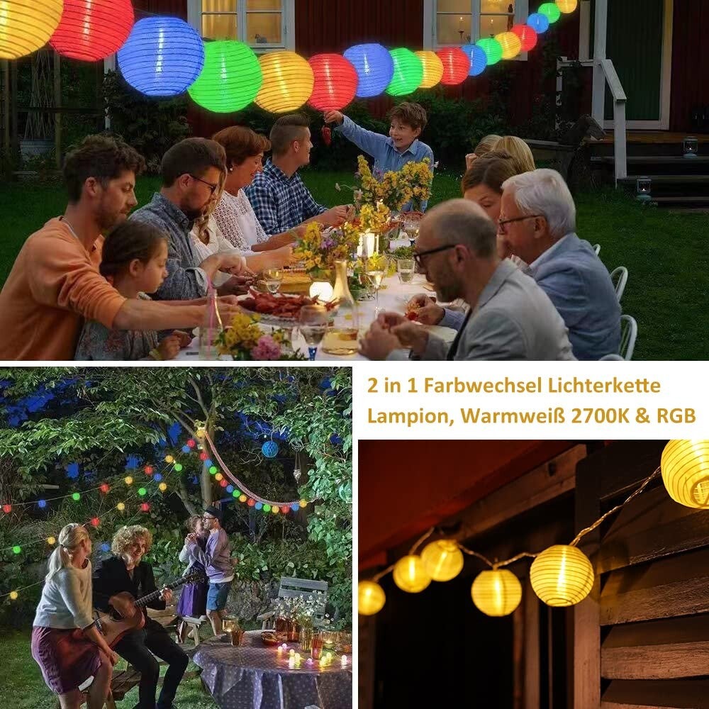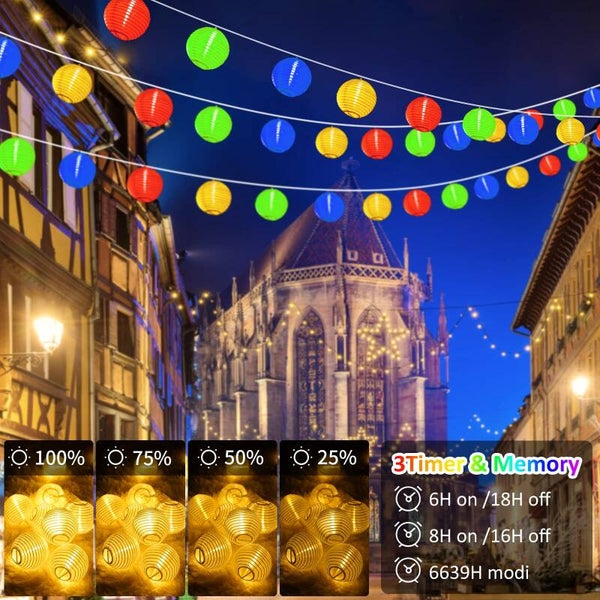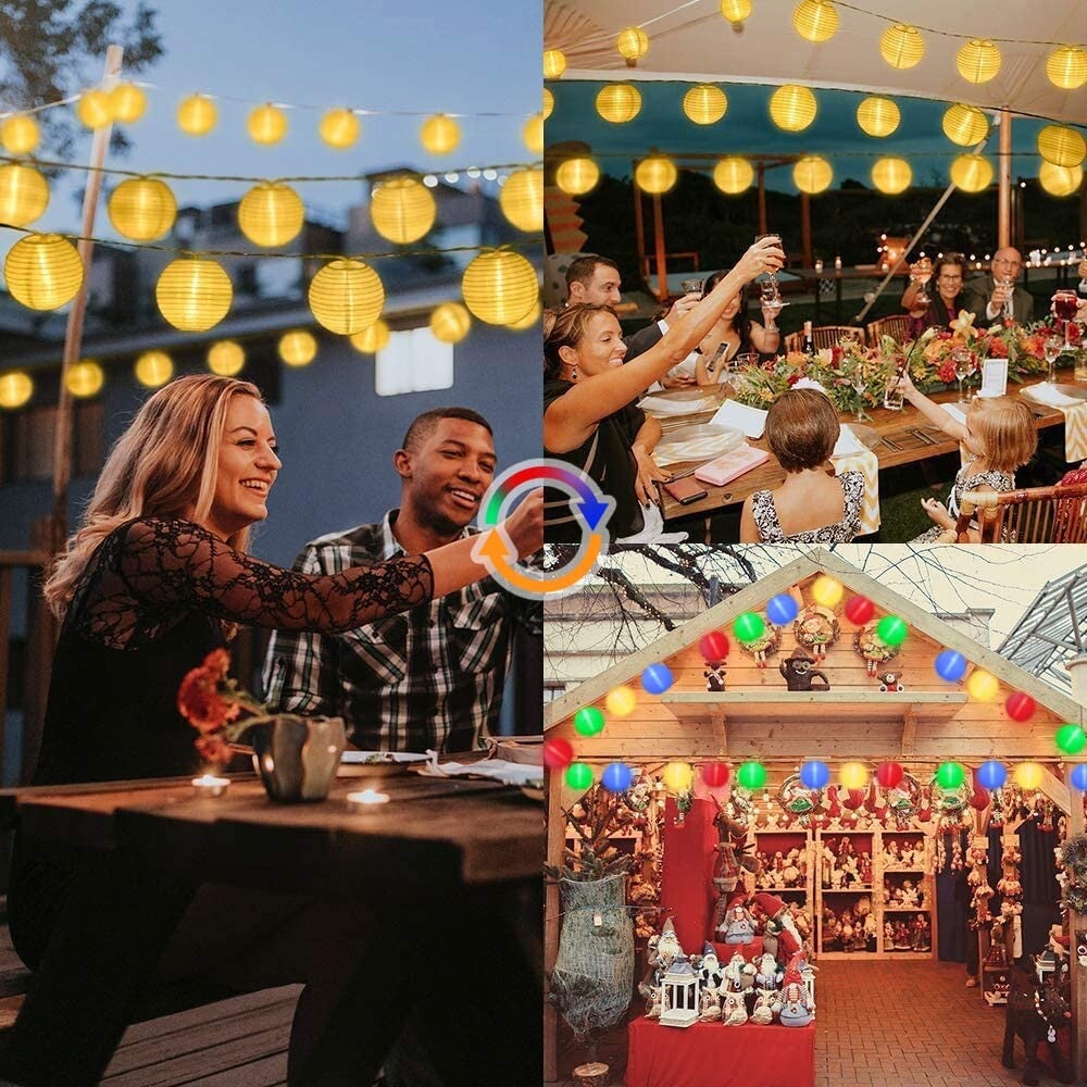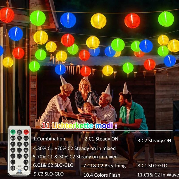 Linternas LED de 12 m, luces de hadas, energía al aire libre, blanco cálido y colorido, luces de hadas de linterna de 11 modos con control remoto, 40 linternas chinas LED, iluminación de luces de hadas, exterior para patio, balcón.