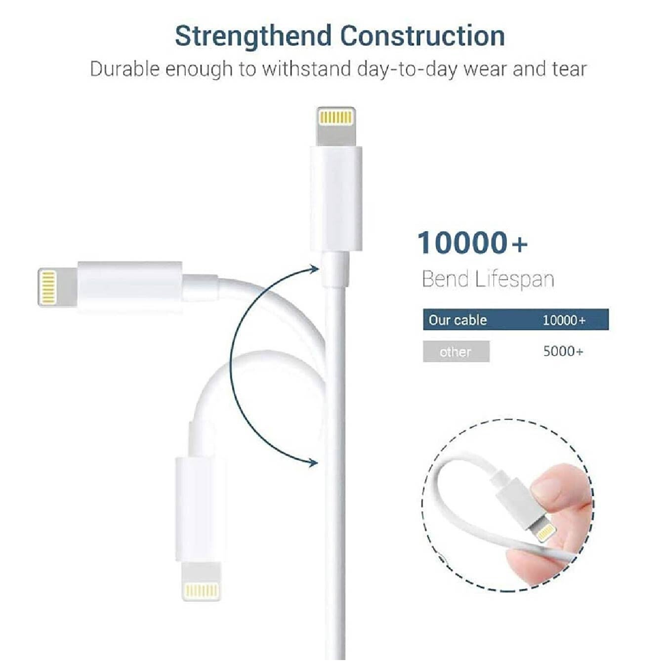 Los cables de cobre de alta tenacidad y alta pureza dentro del cable de carga para iPhone contribuyen a una carga rápida y una transferencia de datos estable.