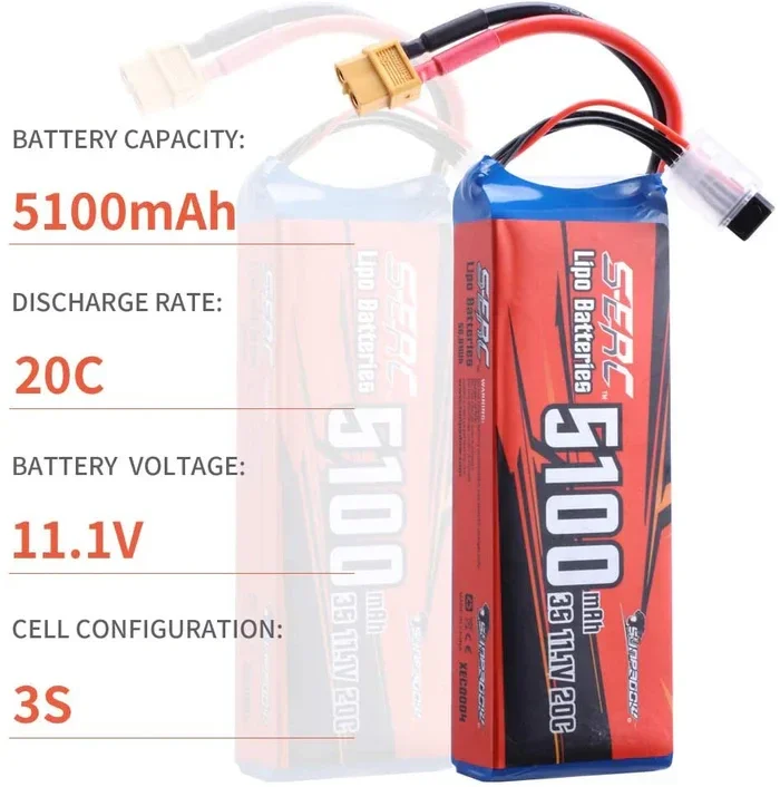 3S 11.1V RC Lipo Battery 20C 5100mAh with XT60 Plug for RC Drone Hobby