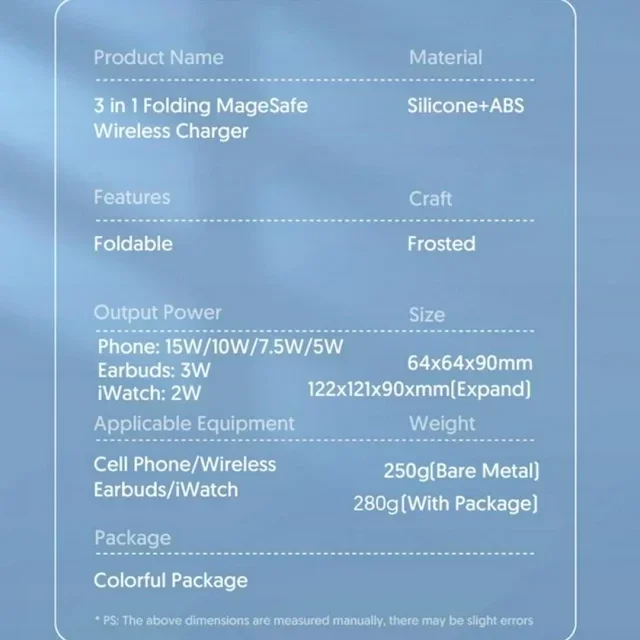 Cargador inalámbrico magnético, estación de carga inalámbrica 3 en 1 con cargador rápido USB-C de 15 W, para iPhone serie 13/12, AirPods Pro.