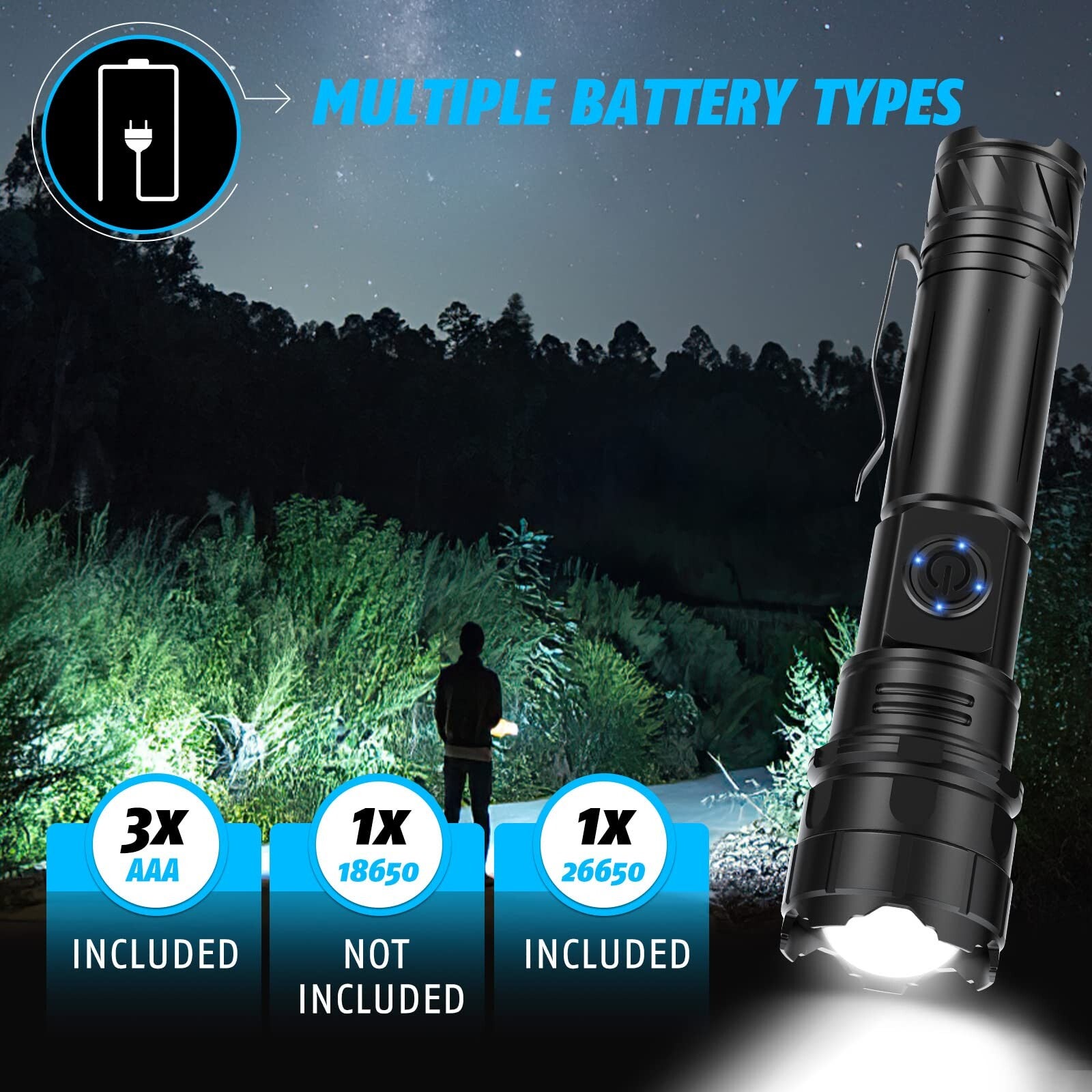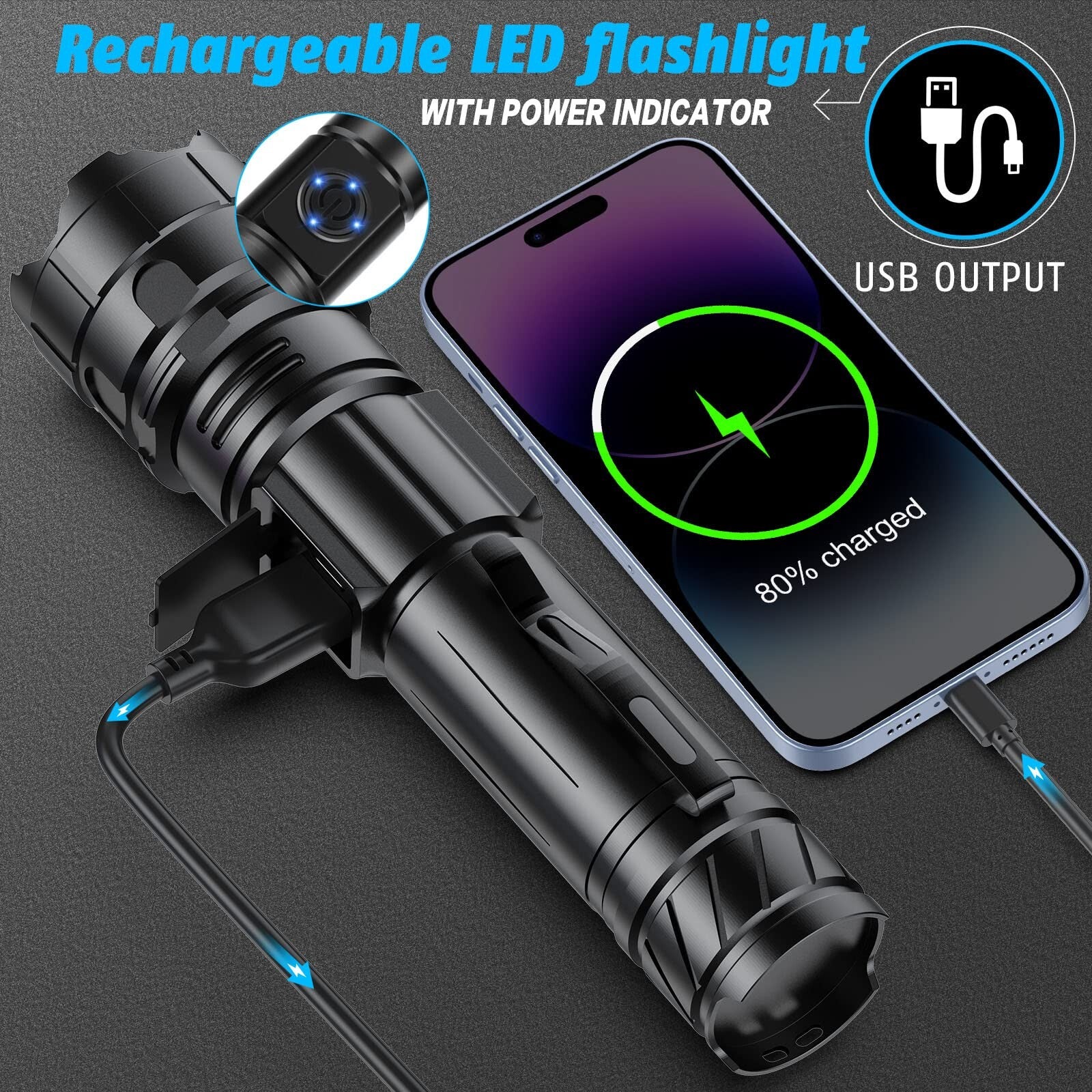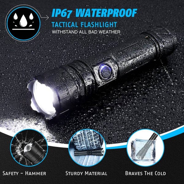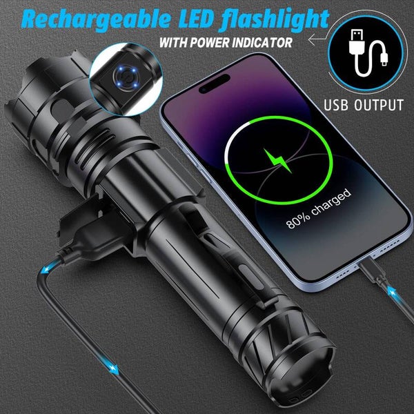 Antorcha LED Relybo USB recargable, antorcha LED extremadamente brillante XHP90.2, antorcha táctica con batería, 5 modos de luz para acampar y hacer senderismo Emergencias