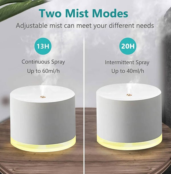 Humidificador inalámbrico portátil de niebla fría - Llévalo a CUALQUIER PARTE. Modo de luz nocturna: pulsa el botón 1.5S para encender el nivel de luz alto; pulsar largo de nuevo para activar el nivel de luz baja. La cálida y suave luz nocturna crea un ambiente tranquilo durante la noche, perfecto para el dormitorio y el cubículo pequeño.