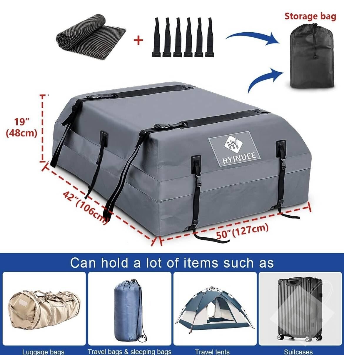 Cofre impermeable para coche de 21 pies cúbicos, apto para todos los cofres de techo de coche con o sin techo.