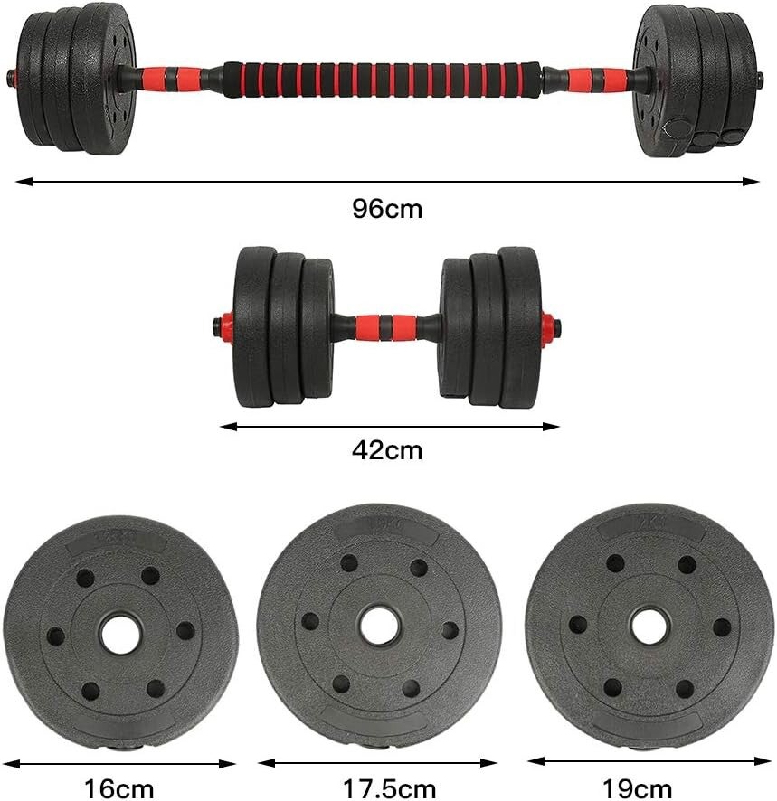 Juego de mancuernas con peso ajustable de 20 kg, juego de barras de peso libre de 2, con conector, Mango antideslizante ligero, adecuado para equipos de fitness de oficina en gimnasios domésticos