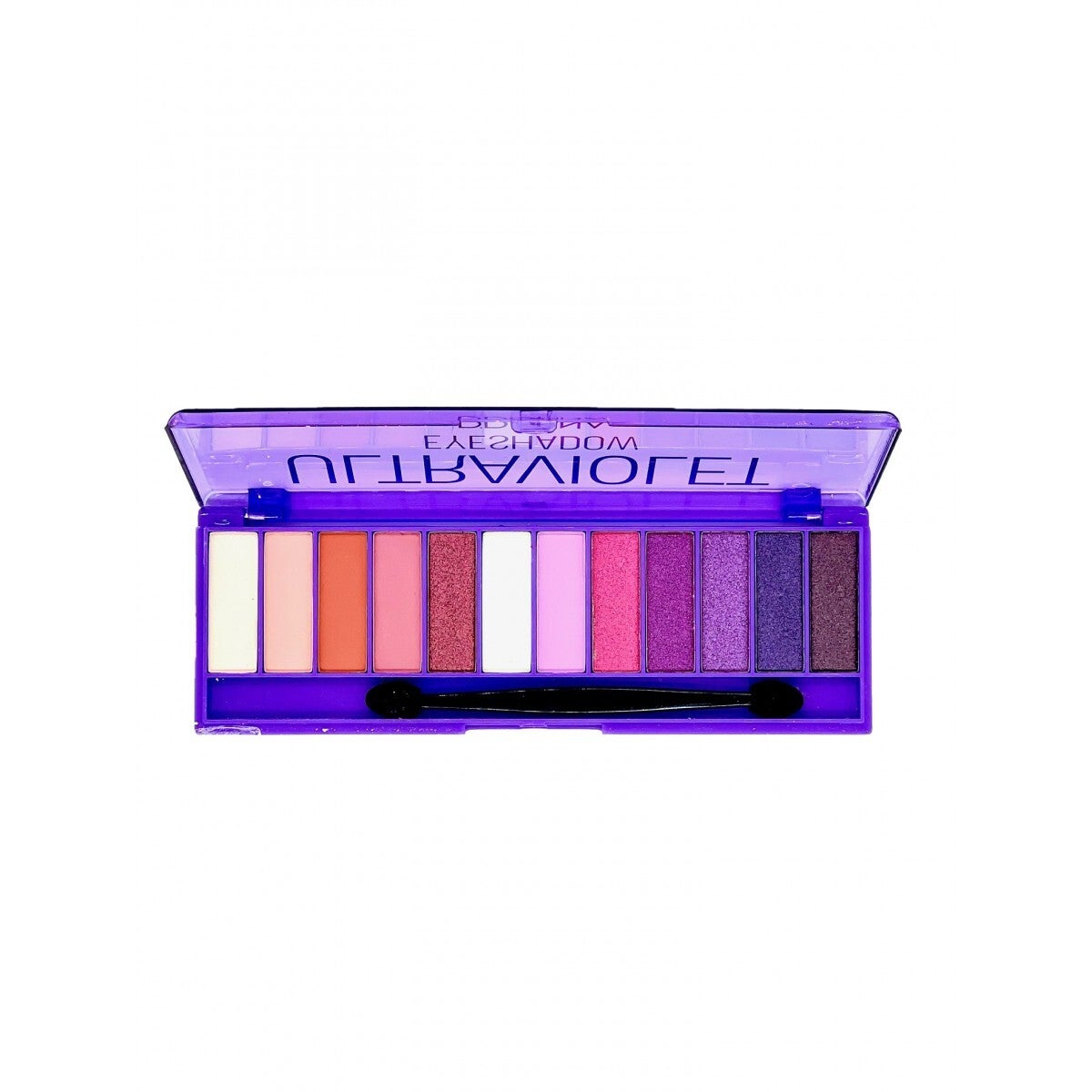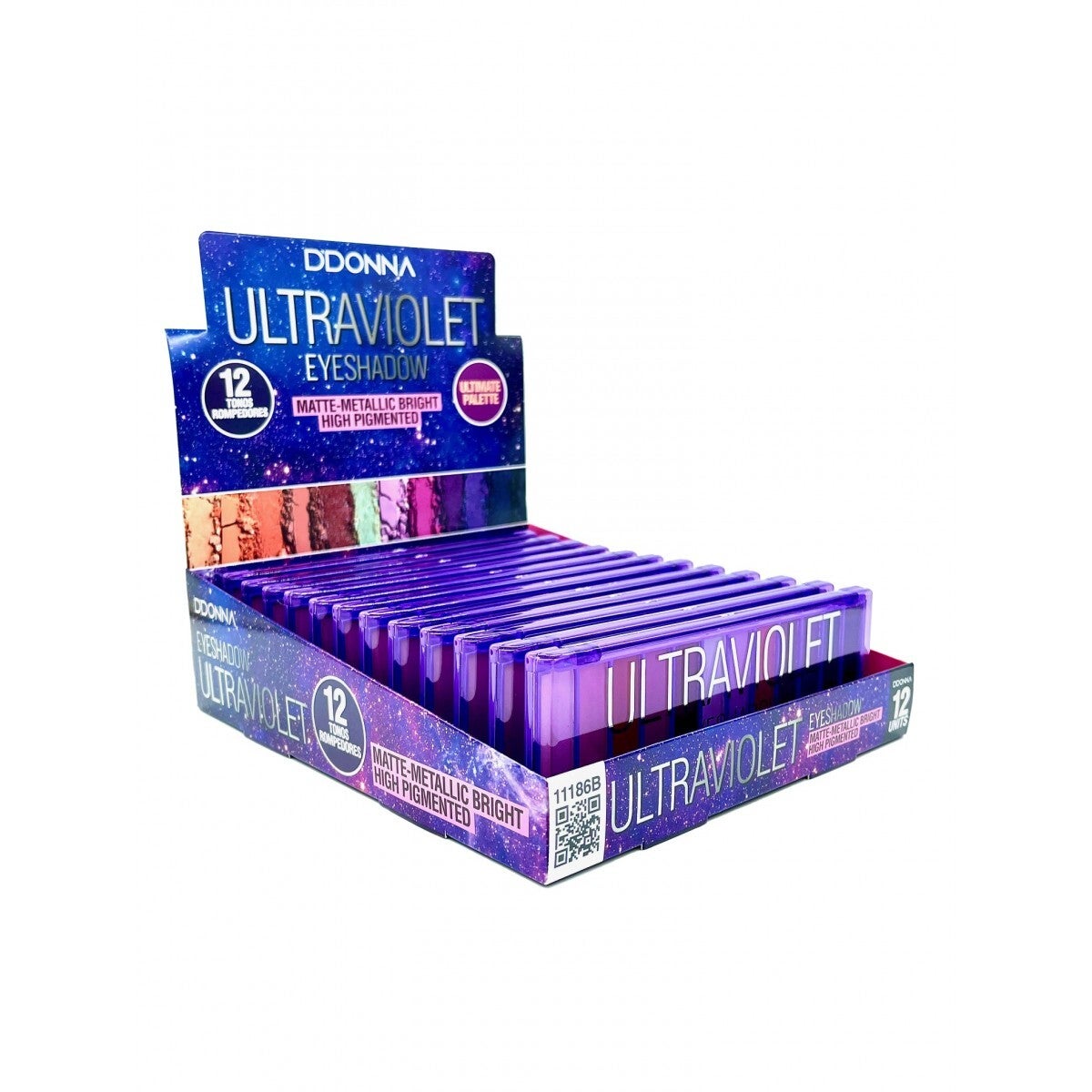 Es una paleta de sombras explosiva y vibrante ,con una combinación de colores morados, violetas y neutros.